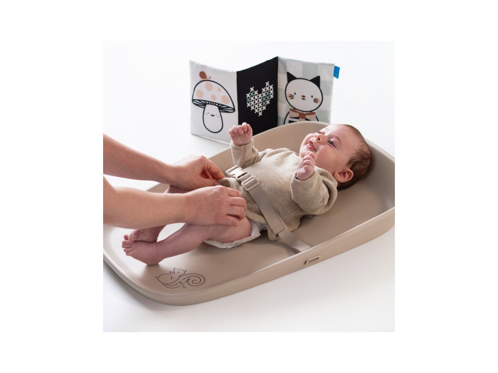 Přebalovací podložka Taf Toys mění každé přebalování v příjemný okamžik pro miminko i pro rodiče. Podložka je vhodná nejen na přebalování, ale také pro hru na bříšku nebo jako hrací podložka na cestách. Součástí balení je textilní knížka pro zabavení miminka během přebalování i pro hru na bříšku.