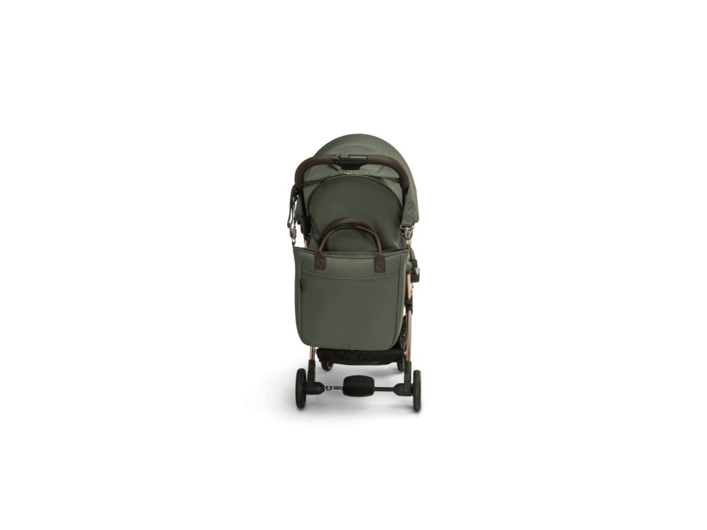 Taška má nastavitelný popruh a po obou stranách jsou upevňovací klipy, pomocí kterých můžete tašku snadno zavěsit na kočárek.