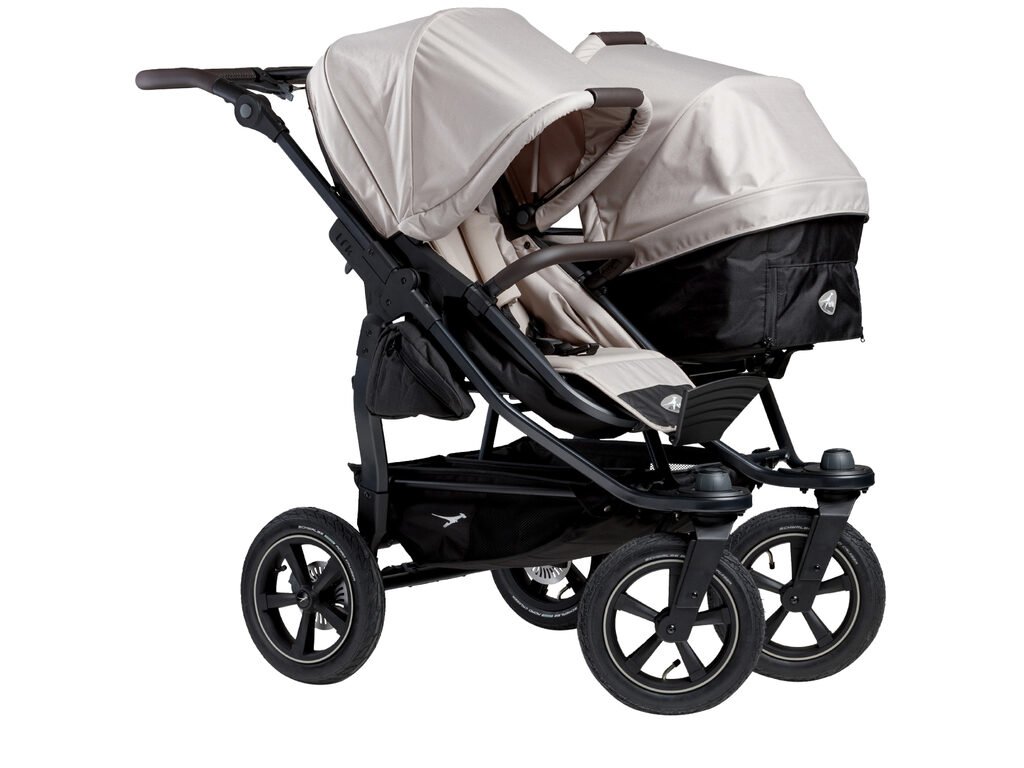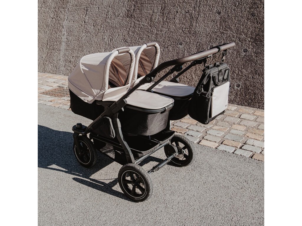 Konstrukce kočárku duo2 je větší, lehčí, odpruženější, lépe ovladatelná. Snadno na ni nacvaknete nový model hluboké korby duo2 combi, nebo sportovní sezení stroller seats duo2. Lze mít separátně dvě korby, nebo dva sedáky pro dvojčátka, anebo kombinaci korba a sedák pro sourozence.