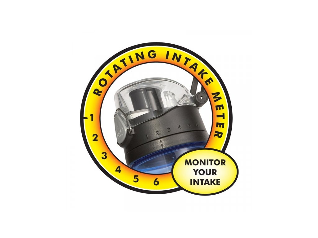 S láhví Intak máte navíc příjem tekutin pod naprostou kontrolou. Rotačním počítadlem na uzávěru jednoduše označíte počet vypitých lahví. Na těle láhve je navíc měrka (ryska) v ml pro rychlé odměření množství nápoje v lahvi.