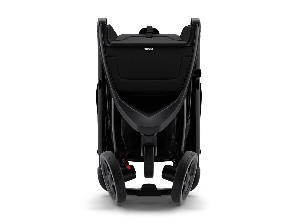 Snadno použitelná nášlapná nožní opěrka a sklopné sedadlo přizpůsobí kočárek Thule Spring potřebám vašeho dítěte od rána do večera.