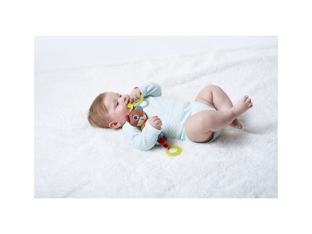 Díky plastovému kroužku hračku můžete zavěsit na postýlku, autosedačku nebo kočárek.