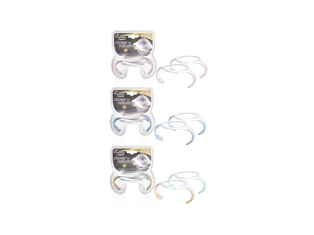 Držadla jsou vhodná do všech kojeneckých lahví Tommee Tippee Closer To Nature. Držadla jsou navržena tak, aby se dítěti pohodlně a bezpečně držela a pomohla mu tak k přechodu na samostatné pití. Neobsahuje bisfenol. Vhodné od 4 měsíců.