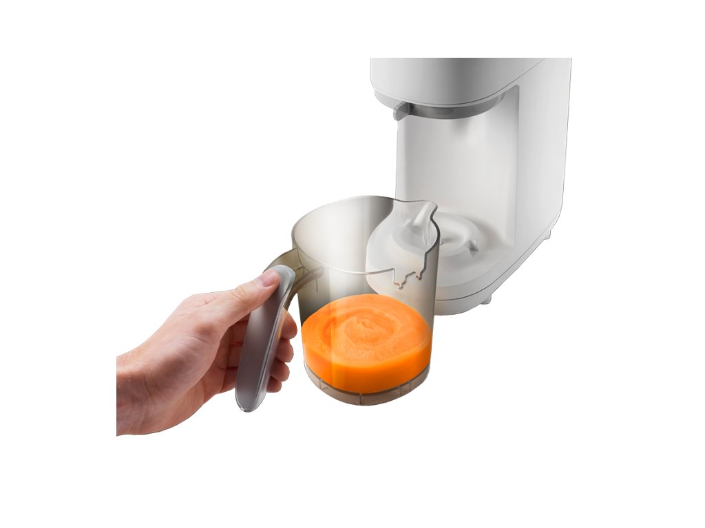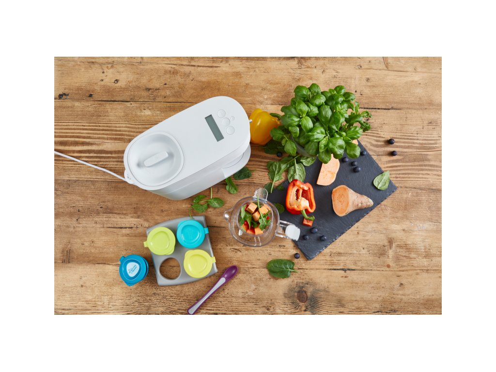 Podle věku dítěte můžete suroviny nastavením délky mixování rozmixovat na jemnou hladkou kaši nebo na hrubší strukturu s kousky. Když se dítě naučí dobře kousat, dá se přístroj dále používat pro zdravé vaření v páře i bez mixování.