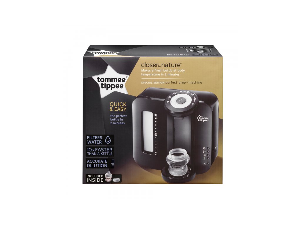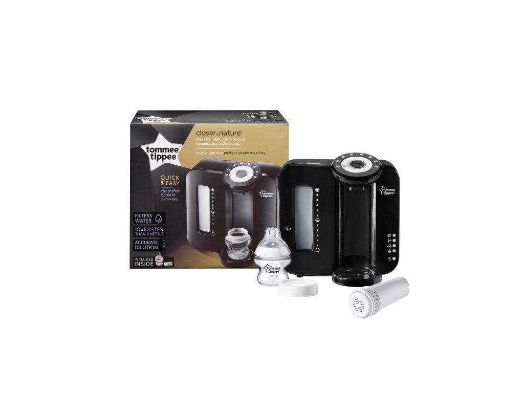 Přístroj na přípravu kojeneckého mléka Tommee Tippee Perfect PrepTM vám umožní během dvou minut připravit lahvičku s umělým mlékem v optimální teplotě pro podání dítěti. Zabudovaný vodní filtr odstraní z vody jakékoli nečistoty.