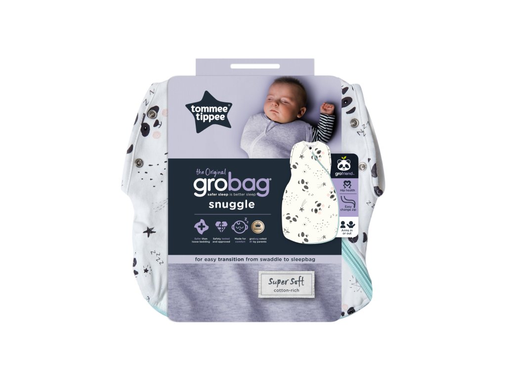 Zavinovačka & spací pytel Tommee Tippee Grobag Snuggle nabízí ideální řešení pro přechod od spaní miminka v zavinovačce ke spaní ve spacím pytli. Nabízí možnost zavinutí miminka do zavinovačky s ručičkami uvnitř i spaní s volnými ručičkami vně spacího pytle.