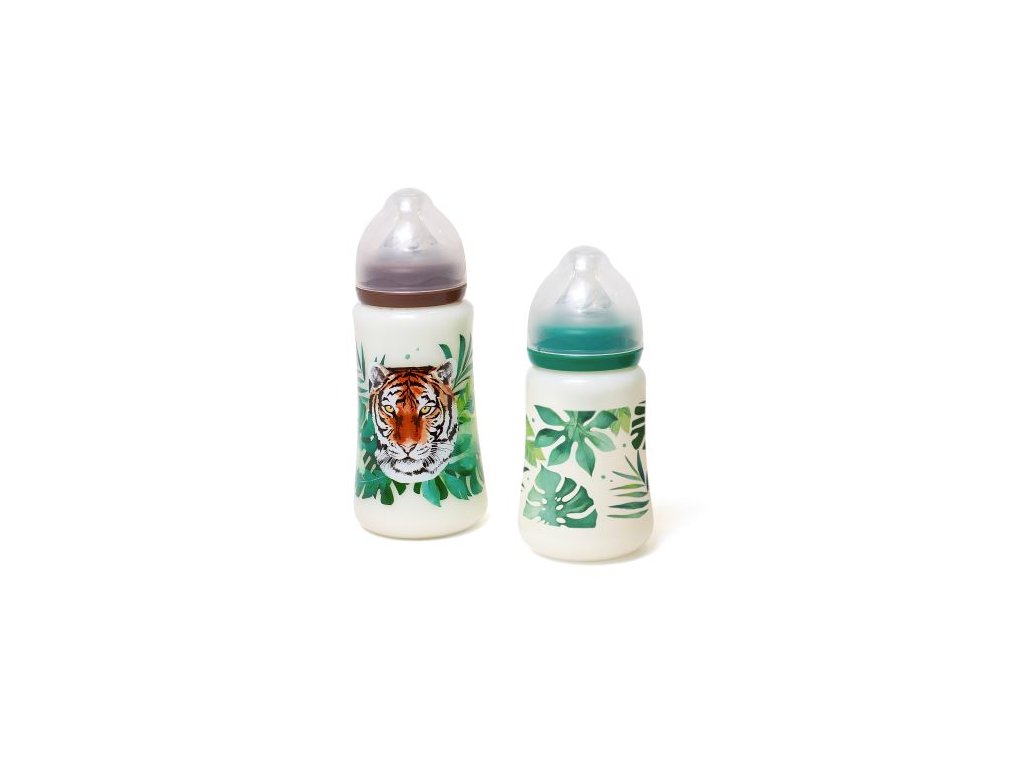 Stylové sady kojeneckých lahví jsou perfektní volbou pro maminky, které chtějí vyrazit s dětmi na procházku nebo výlet. Kojenecká láhev se širokým hrdlem je vyrobena z odolného polypropylenu a neobsahuje škodlivé látky ve formě bisfenolu. Antikolická savička při krmení nenarušuje sací reflex a dítě má pocit, jako by bylo kojeno od maminky. Duální ventil zajišťuje lepší cirkulaci vzduchu, zabraňuje zácpě a tomu, aby se vzduch a plyny dostaly při pití do bříška dítěte. Sada obsahuje dvě kojenecké láhve o objemu 250 ml a 360 ml. Nyní jste skvěle vybaveni a připraveni vyrazit s dítětem na procházku!