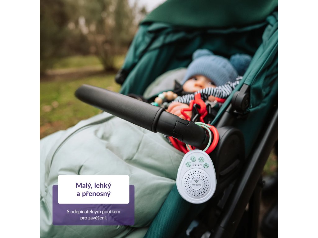 Spokojený spánek děťátka je pro rodiče prioritou, vždyť i ten jejich je pak o poznání kvalitnější. Někdy ale bývá náročné už uspávání, u kterého to vše začíná, proto TrueLife přináší pomocníka v podobě přenosného uspávacího modulu BabyTone S3. Miminka jsou zvyklá na různé zvuky, šumy a především tlukot srdce známý během měsíců v bezpečí pod srdcem maminky, určitě tedy mezi 20 přednastavenými najdete takový, který jej spolehlivě ukonejší nejen doma, ale třeba i na cestách. Pomocí odnímatelného poutka usínáček připnete, kam je třeba, nastavíte časovač, hlasitost a miminko může spokojeně snít. Dobíjecí baterie vydrží až 100 hodin, poté stačí dobít pomocí USB-C. Modul je vyroben z nezávadných plastů a velmi snadno a intuitivně se ovládá pomocí 4 tlačítek. Vybaven je také dětským zámkem, kdyby si s ním dítě začalo hrát. Vaše poslední odehraná melodie se uchová v paměti a po zapnutí se automaticky spustí jako první.