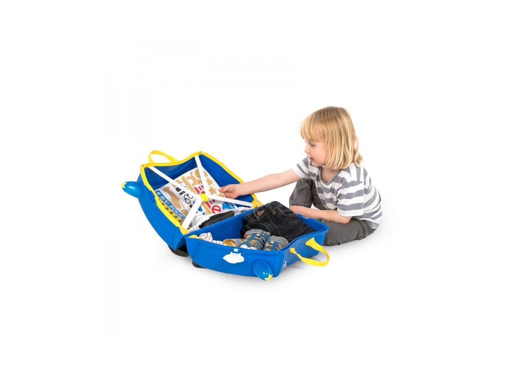 Kufřík a odrážedlo Trunki je ideální na procházky, dovolené i do letadla. Úložný prostor uvnitř s objemem cca 18 l je dostatečně velký na hračky, knížky, oblečení apod. Uvnitř kufříku jsou pásy na uchycení obsahu a postranní kapsa. Otevírání i zavírání kufříku je velmi snadné, takže ho zvládne i dítě samotné.