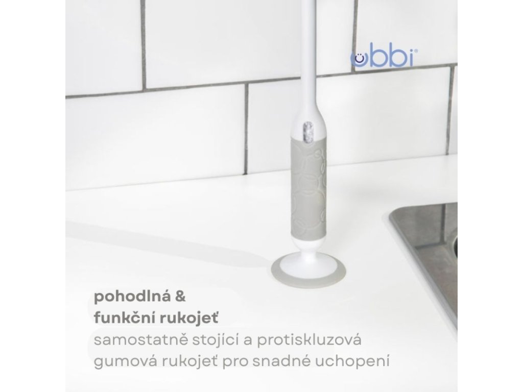 - odolné nylonové štětiny, které nepoškrábou, pro bezpečné čištění všech standardních plastových a skleněných lahví