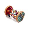 48 barevných dřevěných korálků na pěti drátěných drahách se pohybuje při otáčení hračky nebo je dítě posunuje svými prstíky.