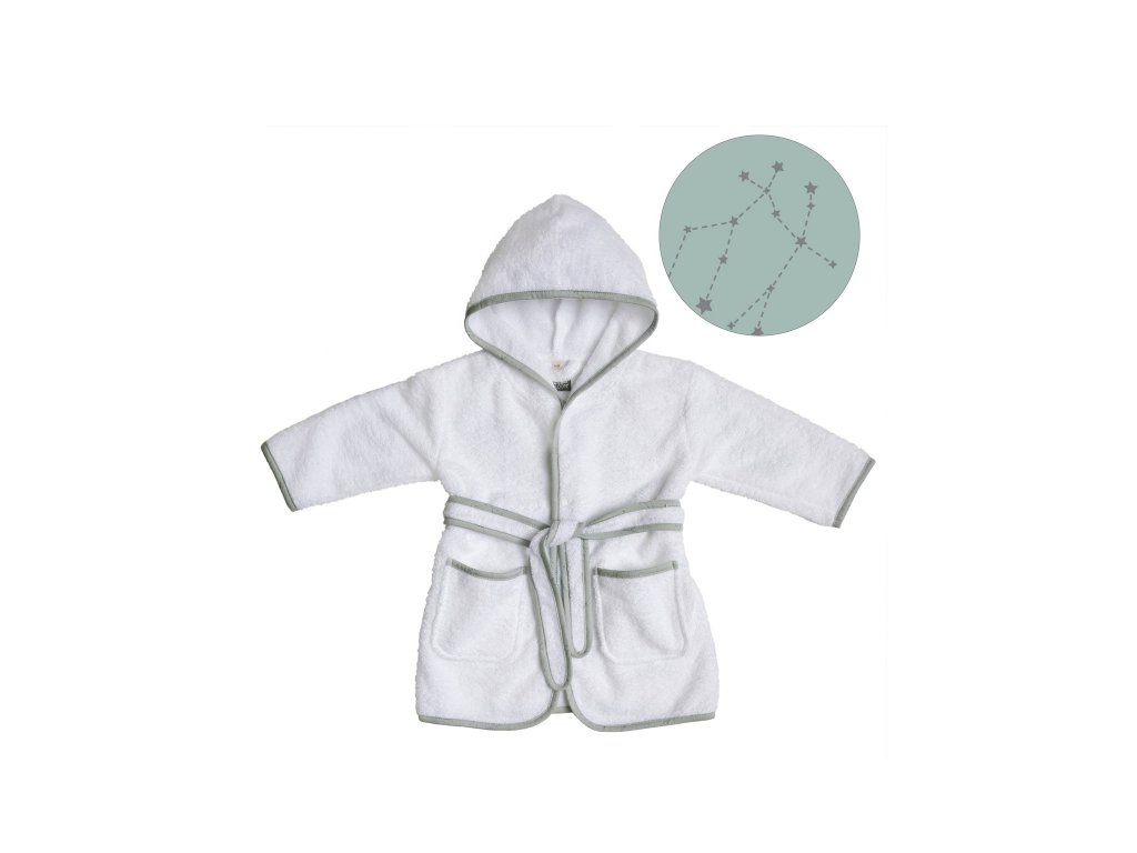 Dětský župan Vinter & Bloom měkké, příjemné a savé froté praktická kapuce a kapsy materiál: 90% organická bavlna, 10% recyklovaný polyester certifikát GOTS údržba: praní na 40 °C vhodný pro děti ve věku 1 - 2 roky celková délka od ramene ke spodnímu lemu je 52,5 cm