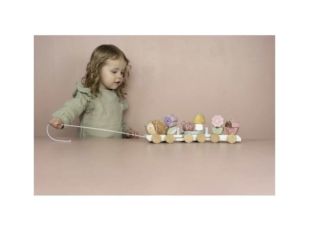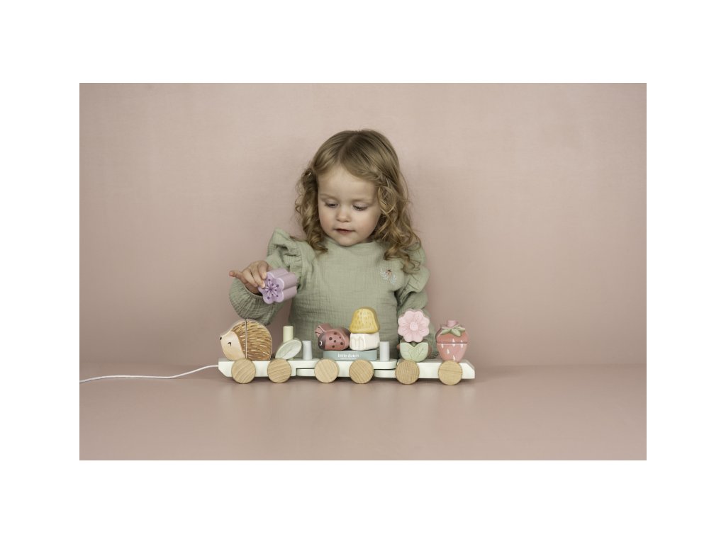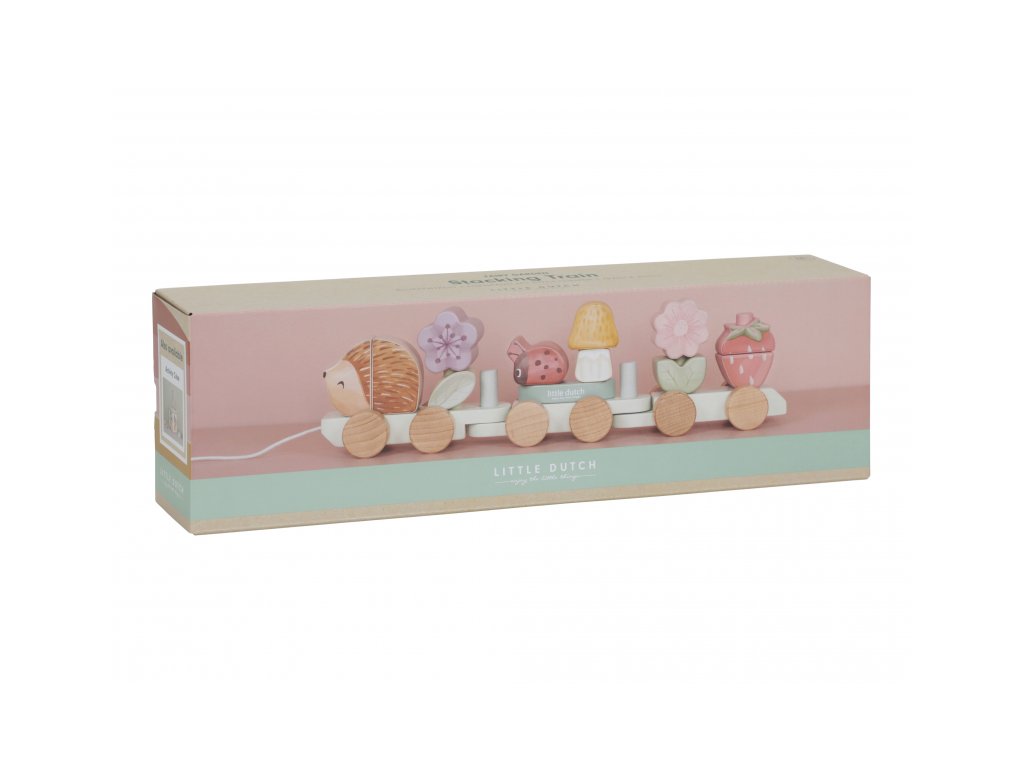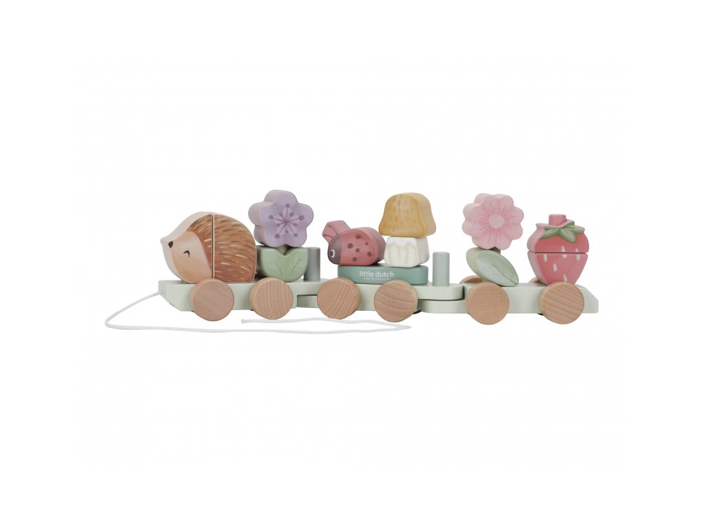 Originální dřevěný vláček z dílny Little Dutch je tvořen kostkami různých barev ve tvaru ježka, berušky, houby, květin a jahody. Kombinováním kostek si vaše dítě může sestavovat různé varianty vagónů dle své fantazie.
