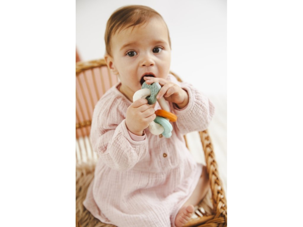 Obsahuje 3 roztomilé barevné klíčky, které snadno uchopí i malé dětské ručičky a svou velikostí i tvarem jsou ideálně přizpůsobené dětským ústům.