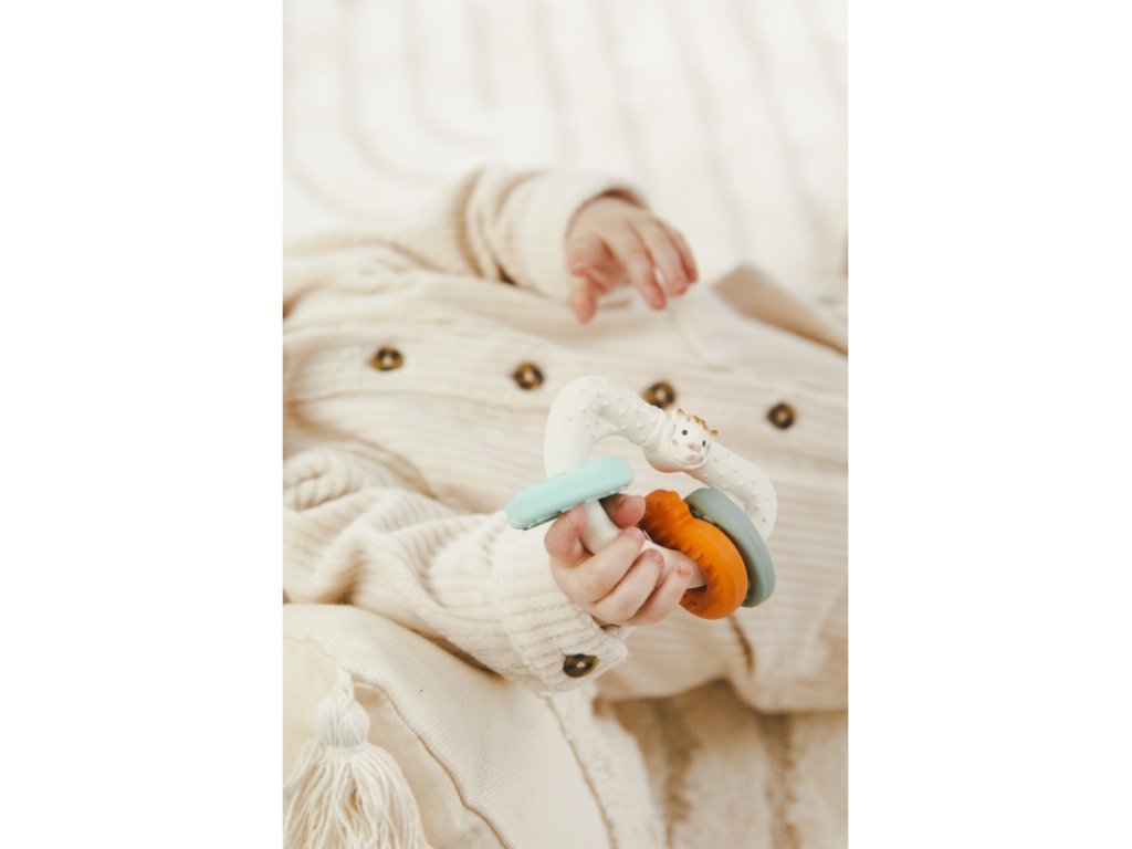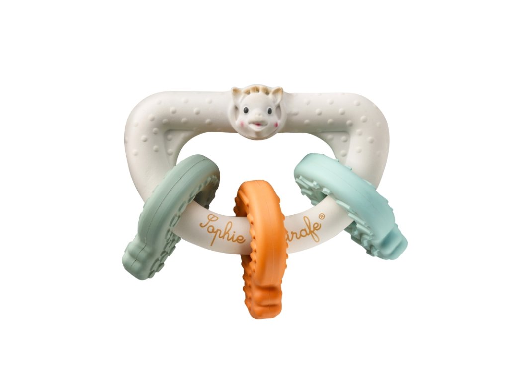 Tento kousací kroužek s motivem žirafy Sophie je vyrobený ze 100% přírodního kaučuku a byl navržený tak, aby doprovázel vaše miminko v období růstu prvních zoubků.