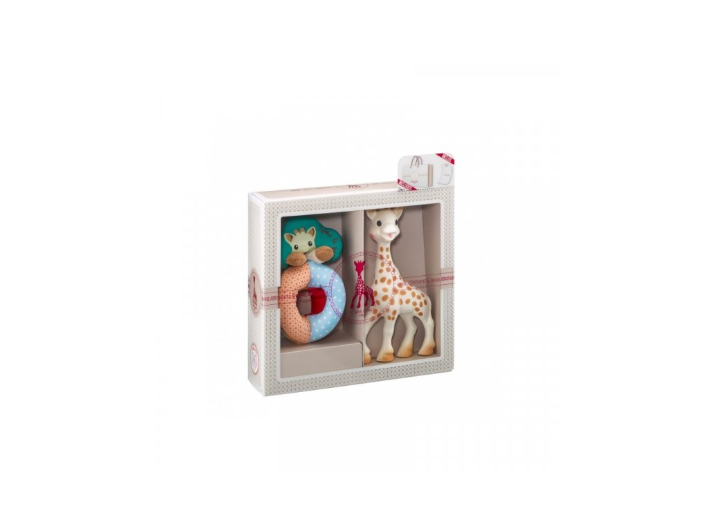 Krásný dárkový set žirafy Sophie 100% přírodního kaučuku a chrastítka!