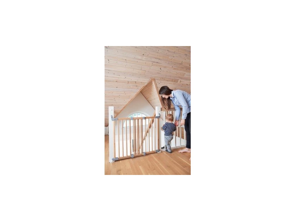 S touto bezpečnostní zábranou BabyDan Elin můžete svého drobečka ochránit před prozkoumáváním schodiště nebo dveří. Elin je jedinečný a velmi flexibilní instalační systém. Je třeba ji přišroubovat do stěny nebo zárubně, ale jakmile ji namontujete, můžete ji snadno vyjmout a znovu nainstalovat bez použití nářadí. Jedná se o ultra flexibilní bezpečnostní zábranu, která se vejde téměř do jakéhokoli otvoru, protože nástěnné kování lze naklonit tak, aby se vešlo dovnitř nebo vně zárubně. Bezpečnostní zábranu mohou otevřít pouze dospělí. Dvířka lze otevřít v obou směrech, a to jen jednou rukou.
