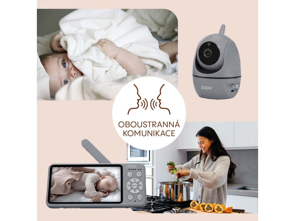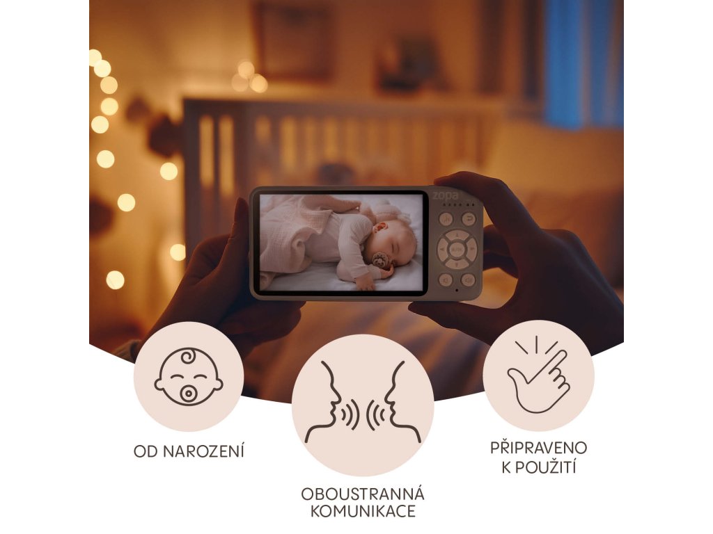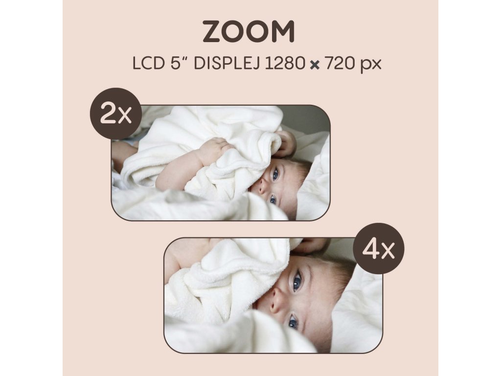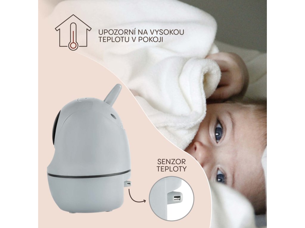 Své děťátko můžete kdykoliv uklidnit na dálku vlastním hlasem nebo mu pustit uklidňující melodie pro příjemné usínání. Integrovaný teploměr vám pomůže vytvořit ideální podmínky pro spánek – nejen že zobrazuje aktuální teplotu v místnosti, ale také vás upozorní na její překročení. Pro klidné noci oceníte úsporný noční režim, který automaticky vypne přenos zvuku i obrazu, když je v pokoji ticho. Při jakémkoliv zvuku se okamžitě znovu aktivuje.