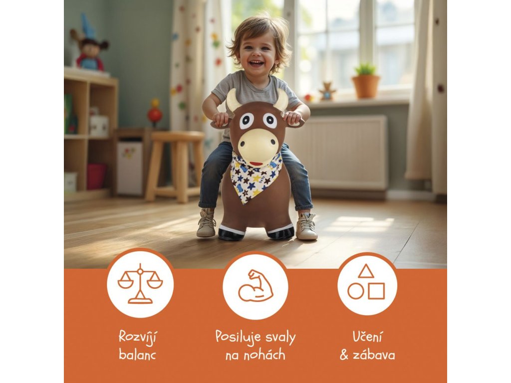 Veselé nafukovací hopsadlo Skippy ve tvaru zvířátka nebo dopravního prostředku je ideální hračkou pro každé aktivní batole. Děti si ho zamilují na první pohled – barevný, roztomilý kamarád přímo vybízí ke skákání, hopsání a veselému dovádění.