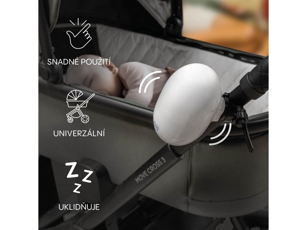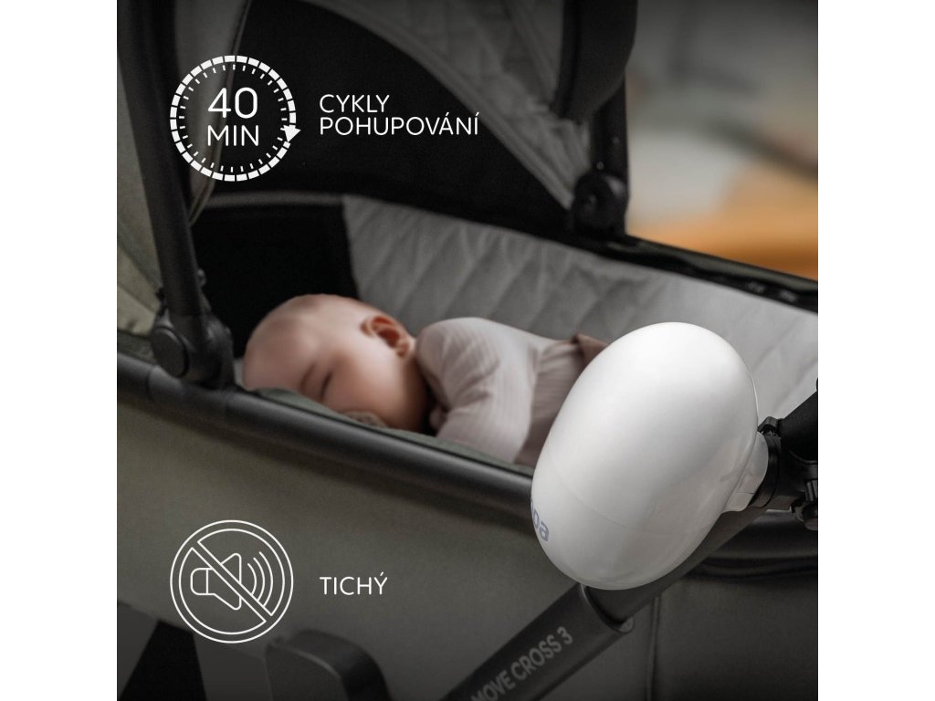 Uspávání bez námahy! Houpadlo Eggy jemně pohupuje kočárkem, aby miminko spokojeně usnulo. Tichý provoz, 5 úrovní houpání, snadné nabíjení a výdrž až 5 hodin. Ideální doma i na cestách.