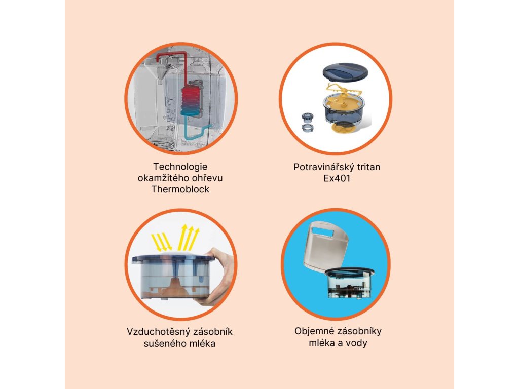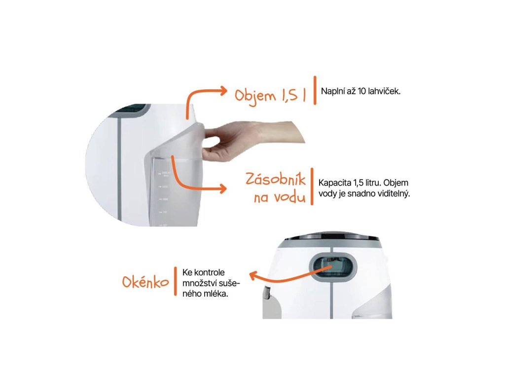 Funguje podobně jako automatický kávovar – jen místo kávy připraví dokonale namíchané mléko pro vaše miminko během několika vteřin. Užijte si více času se svým dítětem a méně starostí při každém krmení, ve dne i v noci.
