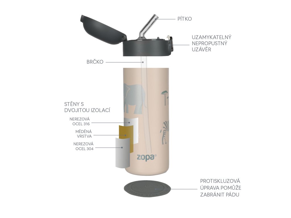 Žádný problém! Designová termoska s veselými motivy o objemu 400 ml je díky kvalitnímu vzduchotěsnému uzávěru a dvojité stěně z nerezové oceli připravena udržet jakékoliv tekutiny vždy v optimální teplotě po dlouhou dobu - horké nápoje uchovává teplé až 12 hodin a chladné až po dobu 24 hodin. Vaše dítě tak bude mít svůj oblíbený nápoj stále při ruce, ať už se vydá za dobrodružství kamkoliv.