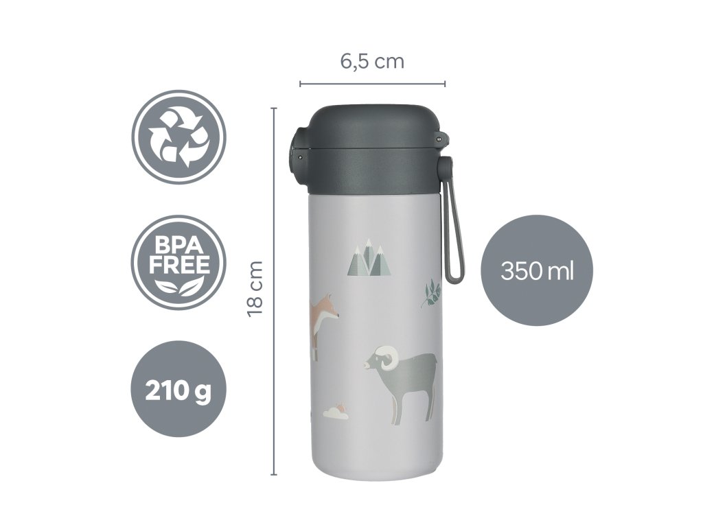 Designová termoska s veselými motivy o objemu 350 ml je vybavena spolehlivým vzduchotěsným uzávěrem a dvojitou vrstvou kvalitní nerezové oceli, aby byl nápoj vždy v takovém stavu, jaký ho připravujete - horké nápoje uchovává teplé až 12 hodin a chladné až po dobu 24 hodin.