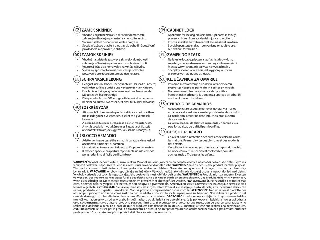• Vhodné k zajištění zásuvek a skříněk v domácnosti